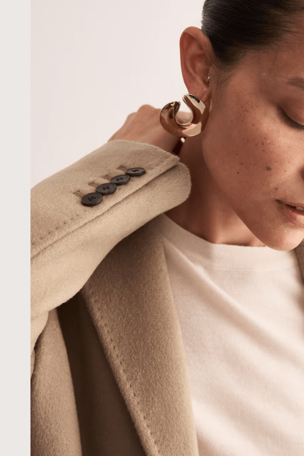 Crafted from premium wool, this elegant double-breasted coat offers warmth, structure, and timeless sophistication. The tailored silhouette and rich brown tone create a refined look that elevates any outfit. Perfect for cold days, city strolls, or polished everyday wear.